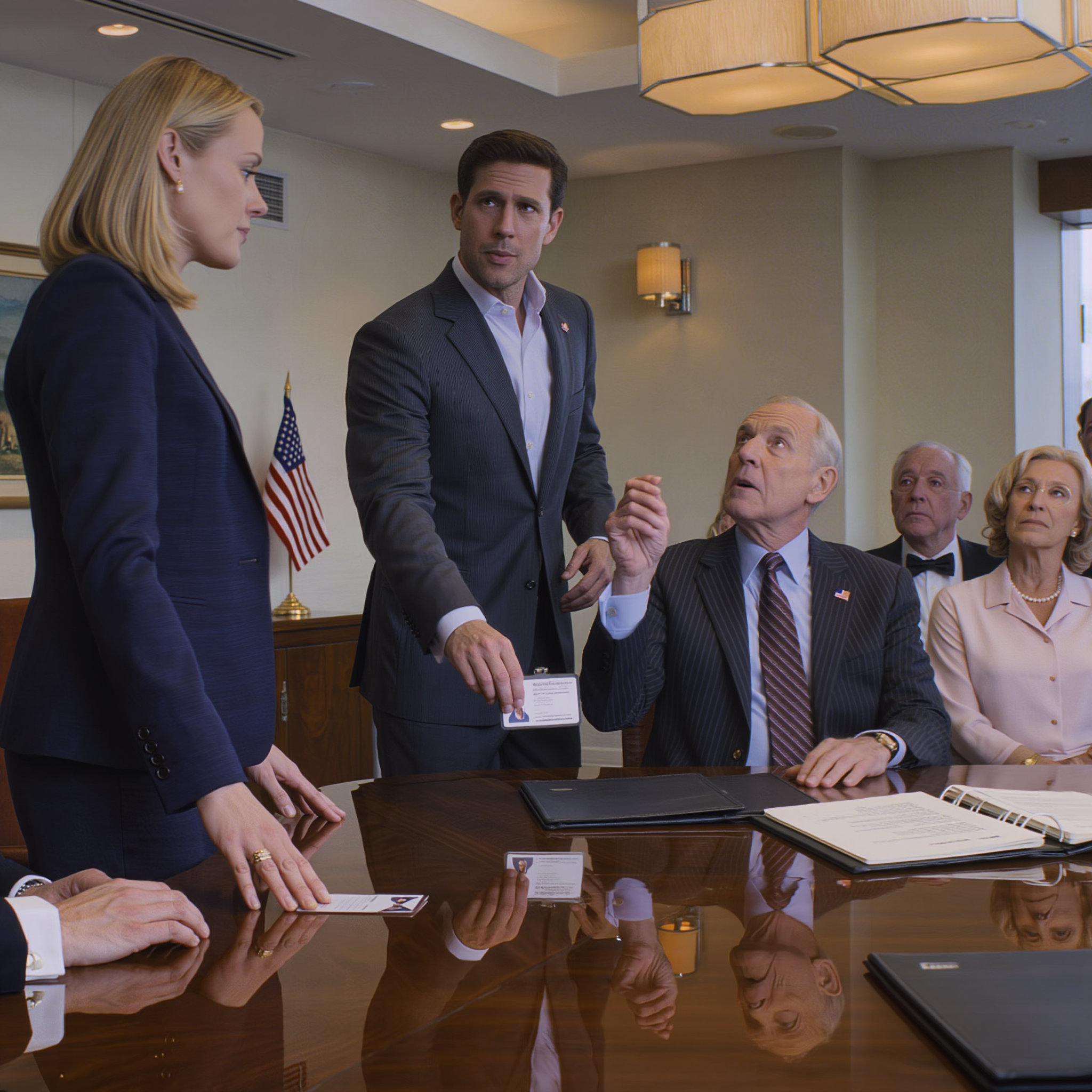 I didn’t speak. Ethan did something quieter. He reached into his blazer, took out his wallet, and slid an ID across the polished table. It stopped in front of Gentry’s immaculate hand like a coin in a magic trick. He picked it up casually, then froze. His brows pulled together, then again, then again, like the words were changing underneath his eyes.