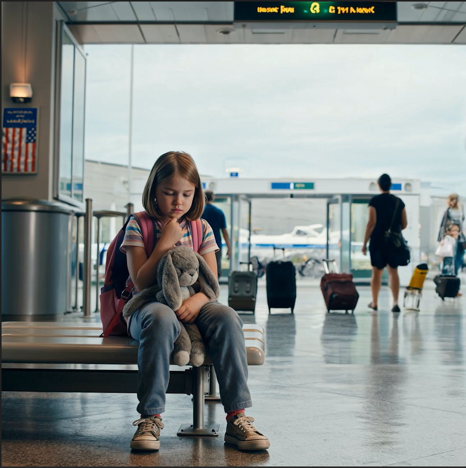 When I saw my 8-year-old granddaughter sitting alone in that airport, her pink backpack between her legs and her eyes full of unshed tears, I knew something inside me had changed forever. I didn’t yell. I didn’t run. I just walked toward her, my heart pounding so loudly I thought everyone around me could hear it. Lucy looked up and recognized me. Her lips trembled, but she didn’t say anything. Neither did I. I took her hand, picked up her small suitcase, and we walked out of there in silence.