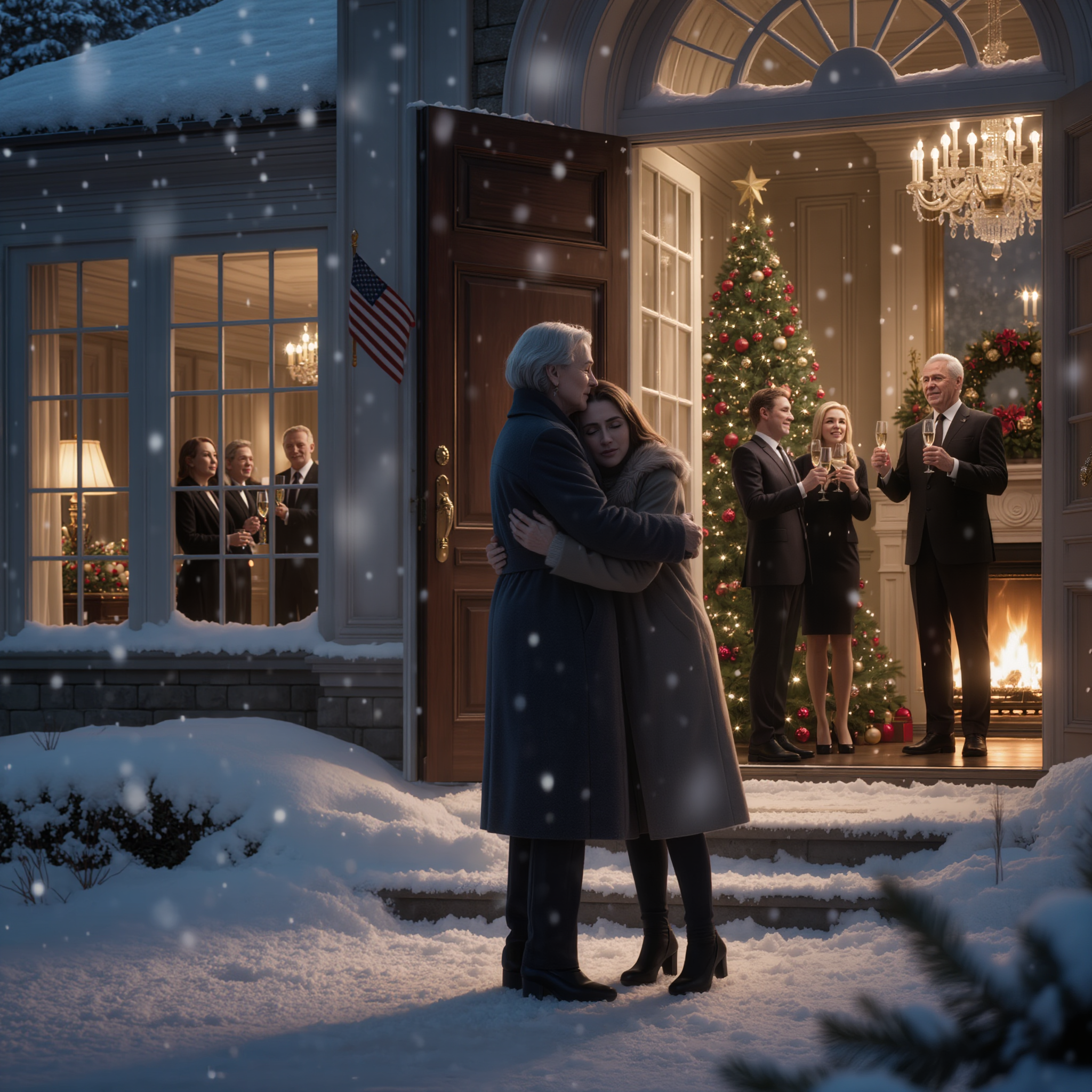 Through the large bay windows, I could see the Whitmore family gathered in their opulent living room, laughing and drinking beside a roaring fire, completely indifferent to the woman freezing just outside their door.