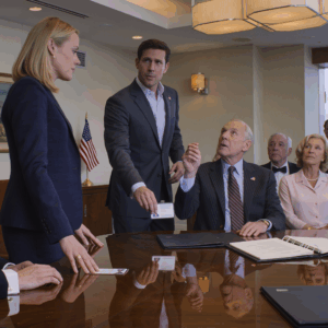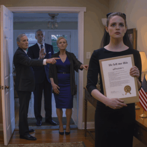 The man on my porch wears a charcoal suit that costs more than my monthly pension. Snow dusts his shoulders. His briefcase gleams…